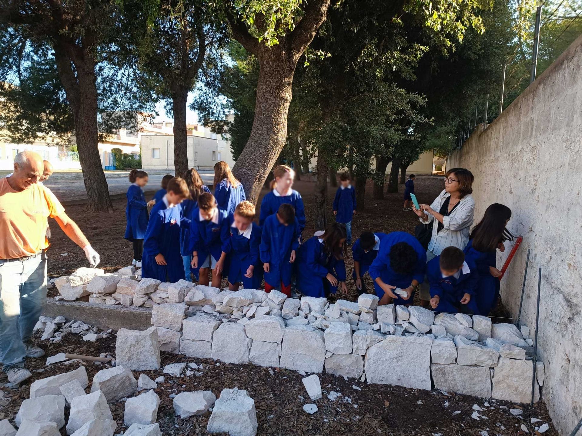 PROGETTI CON LE SCUOLE: Costruzione muro in pietra realizzato con i bambini